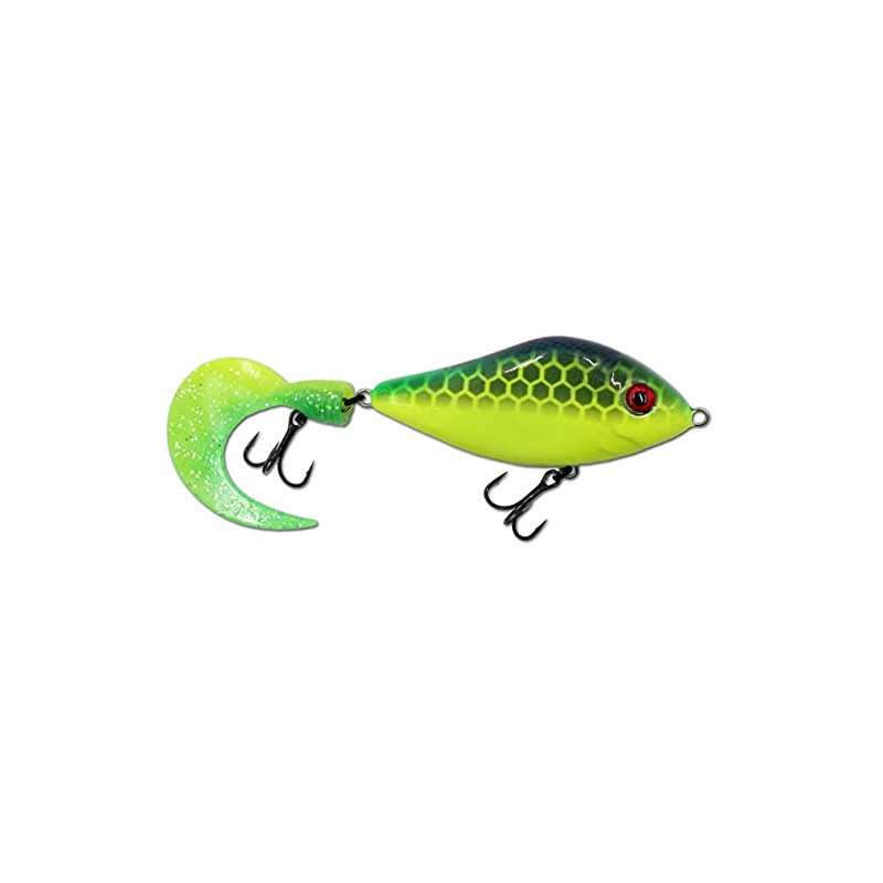 The Wild Devil Baits Tailbait is a stunning lure - a hardbait with a twister tail. It combines the classic run of a jerkbait with the seductive flank of a soft bait. When you pluck them slowly, they zigzag from one side to the other. During plucking breaks, the bait vibrates when sinking along its entire longitudinal axis thanks to rattles. The special sinking behaviour in combination with the softtail allows you to hope for a bite shortly after the bait hits the water surface. The tailbait can also be fished over herb fields or even in clear water lily fields.