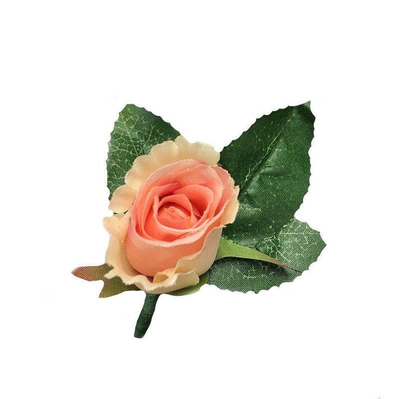 Angel Isabella Boutonniere - Peach Pink Rose Foam Baby Breath with Pin for Prom, Party, Wedding