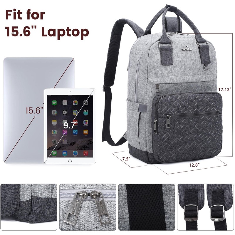 - đȘăLarge Capacity Laptop Backpackă: Featuring a separate laptop compartment measuring 12.8 x 5.5 x 17.12 inches, capable of accommodating up to a 15.6-inch laptop and a 9.7-inch iPad pocket. The spacious main compartment easily holds 2-3 days worth of clothing and essentials, making it a practical choice for women on the go.