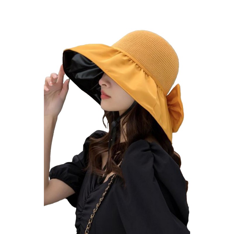 Angel's Closet Women's Hat, Sun Protection, Cool, Back of the Neck, Drawstring, Foldable, Storage Bag Included, Ribbon, UV Protection, Wide Brim, Straw Hat, Sun Protection, UV Protection, yellow