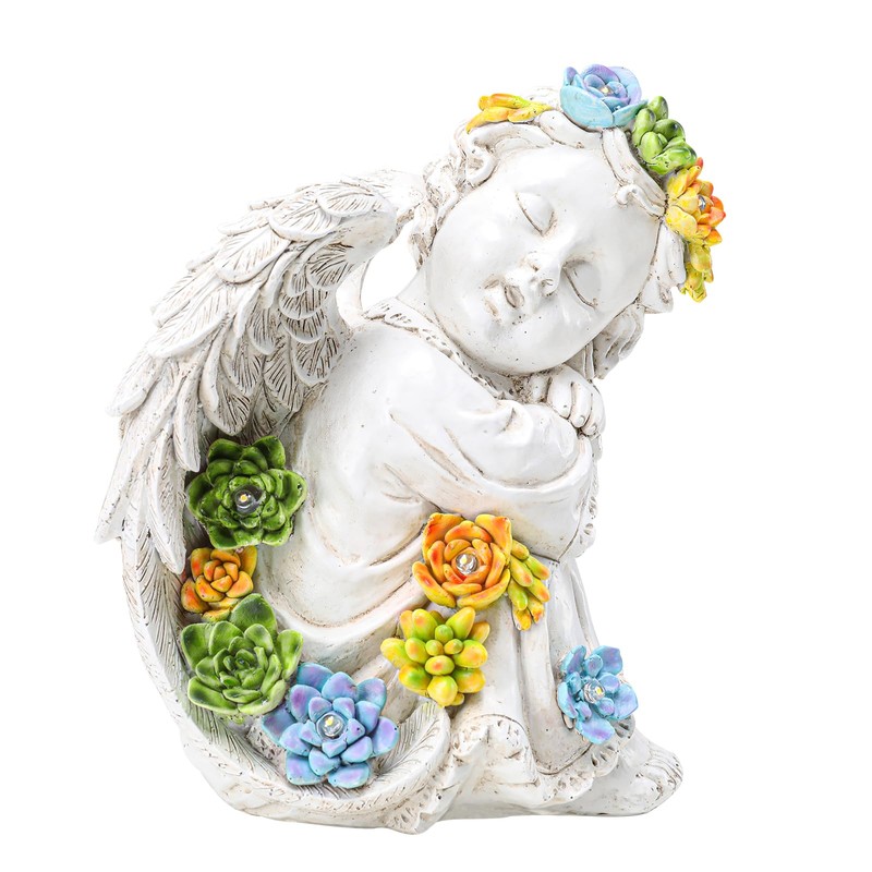 - {Enchanted Angel Statues for Garden} Our exquisite garden angel statue, adorned with radiant succulents, cradles a slumbering serenity that imbues tranquility, bestowing healing, solace, and inspiration—a captivating vision of serene allure.