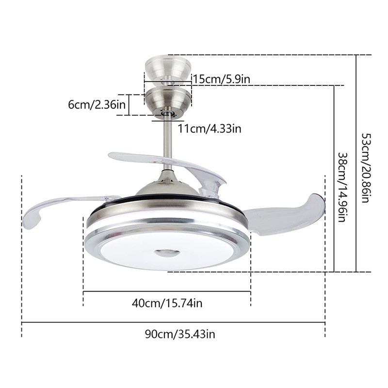 AngelcityCC 36" Retractable Ceiling Fan with Light and Remote Control, Dimmable LED Chandelier Ceiling Fan with Invisible Blades, Suitable for Living Room, Bedroom, Kitchen, Dining Room Chrome Silver