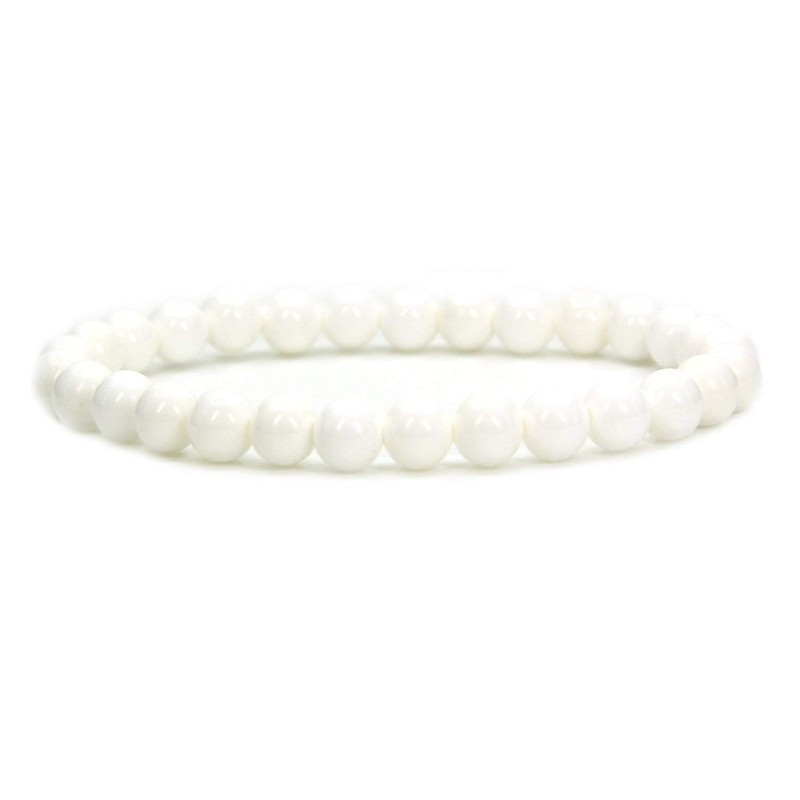 Angelstones Natural Tridacna Shell Gemstone 6mm Round Beads Stretch Bracelet 7" Unisex