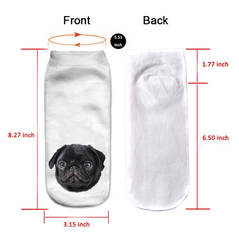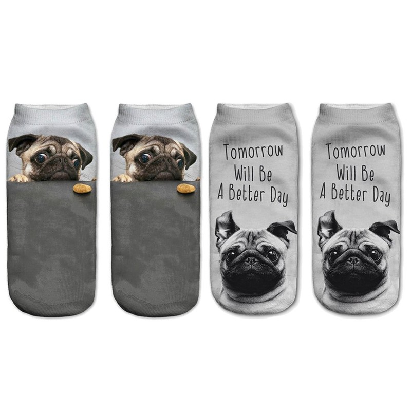 Angelteers 7 Pairs Funny Dog Ankle Socks Novelty Animal No Show Socks for Women (US, Alpha, One Size, Regular, Regular, Funny Pug Dogs)