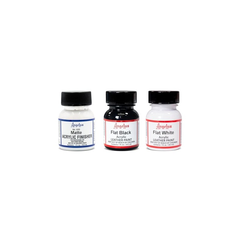 Angelus Kit de Pinturas Acrílicas para Cuero, Negro y Blanco, 29.5 ml cada uno, con Acabado Mate, Flexible y Mezclable