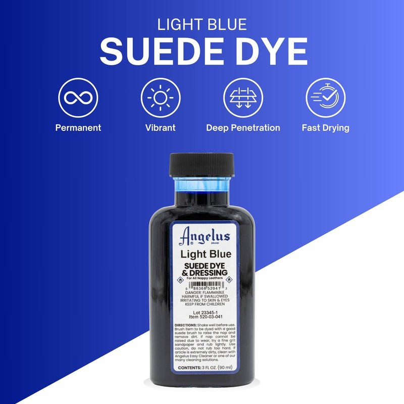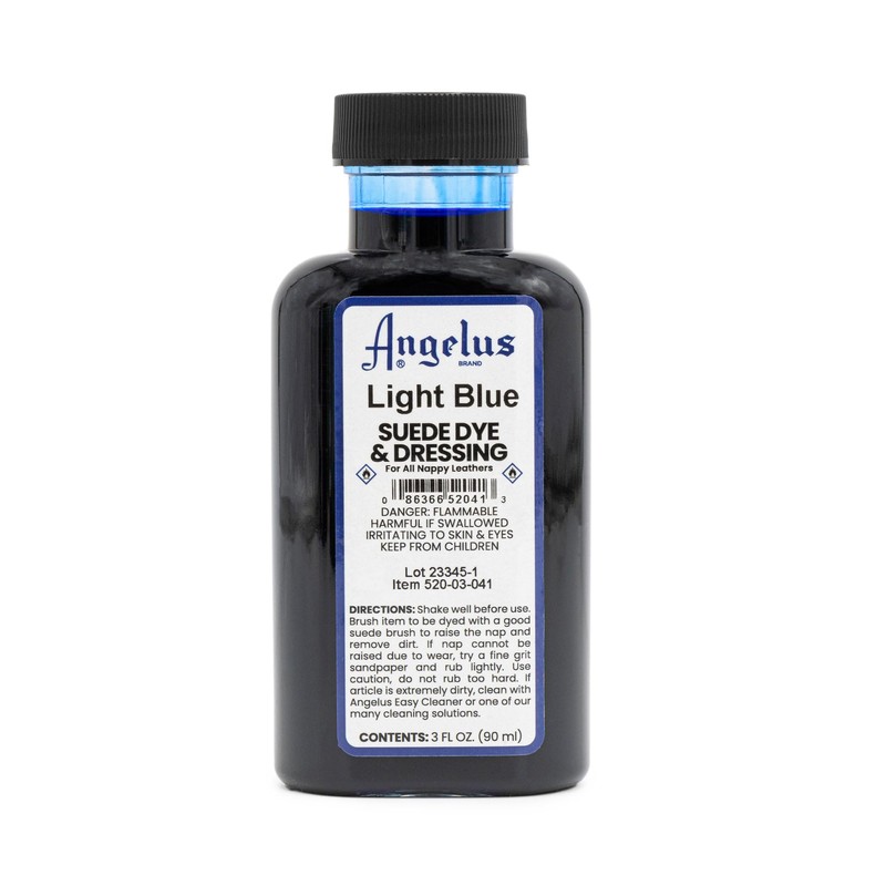 Angelus Suede dyes dye, restore and maintain all suede and suede. Suede leather and suede should be brushed after dyeing to restore the pile. This highly pigmented liquid also works well on smooth leather. Available in a wide range of colours and made in the USA. Single 3oz bottle with wool swab included, black.
