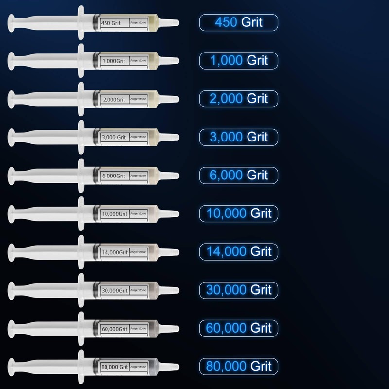 - 10-Grade Diamond Polishing Compound Kit: This all-inclusive set features 10 different grits, ranging from 450, 1,000, 2,000, 3,000, 6,000, 10,000, 14,000, 30,000, 60,000, to 80,000. From coarse grinding to ultra-fine polishing, this set meets all your sharpening, honing, and finishing needs with precision and efficiency.