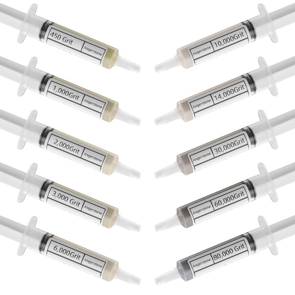 Angerstone 40% Concentration Diamond Polishing Compound Kit of 10 Lapping Compound 80,000 to 450 Grit, Professional Stropping Compound for Metal Jewelry Glass Resin Marble Watch Diamond Paste