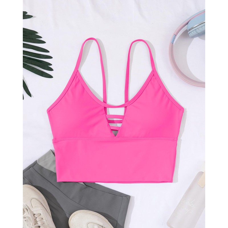 - Strappy Padded Fitness Tank Shirts Longline Sport Bra.Sport bra for women workout yoga crop top is padded with removable pad for convenient adjustment.Padding of camisole workout yoga bra is easy to take out,use it or not as you want.Workout longline sports bra for women padded provides good support for your breasts and adds extra shape to your body curve,it's great seamless wirefree and supportive sport bra for womens girls.Strappy crop top sport bra allows a range of motion when you exercise.