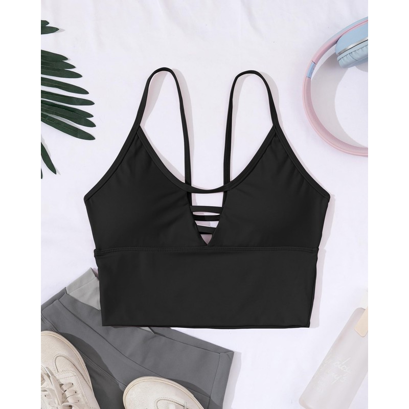 - Camisole Workout Yoga Crop Top Strappy Padded.Camisole sport bra for women longline tank top intend to provide medium to high support for A/B/C/D cups,great for low,medium and high impact activities.Strappy sport bra for womens camisole tank top prevent bra from shifting and won't dig in skin.It's perfect for yoga,exercise,fitness,sport,gym,any type of workout or everyday use.Workout yoga crop top fitness tank shirt also can be paired with high waisted leggings or skirts for a fancy casual look.