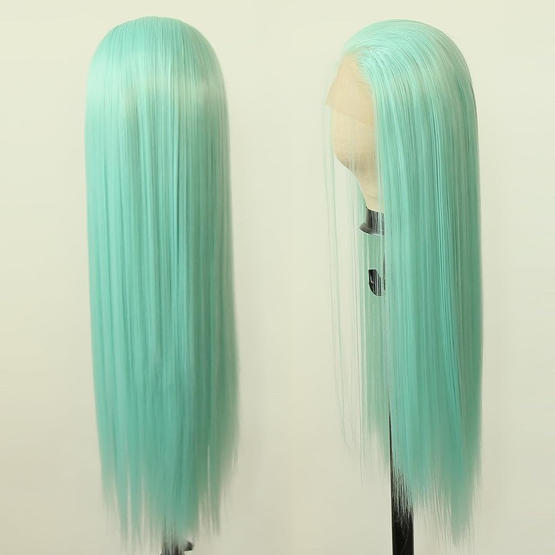 Angle Lucky Mint Green Wigs for Women Long Silky Straight Mint Green Lace Frontal Wig Heat Resistant Fiber Natural Hairline Glueless Daily Wear Wig 24inch