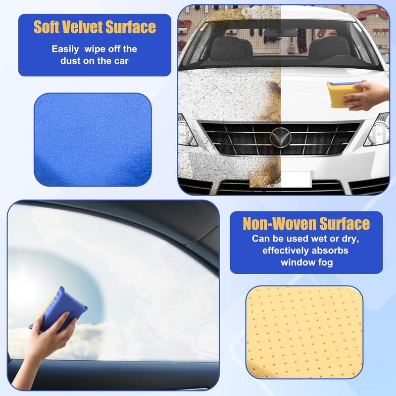 - 【Absorbent Well】: The sponge windshield cleaner has a blue velvet surface has good adsorption, suitable for defogger, or cleaning residual tiny substances, keeping the car body clean
