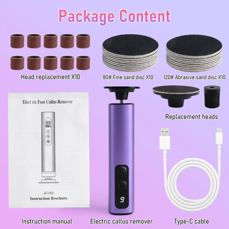 - What You Will Get: The ANGNYA electric foot callus remover set contains 1 electric pedicure tools for feet, 1 type-c charging cable, 10 80# coarse and 10 120# finer replacement sandpaper disks for removing calluses and dead skin, 10 polishing heads for polishing fingernail and toenails. One ANGNYA set will meet your needs