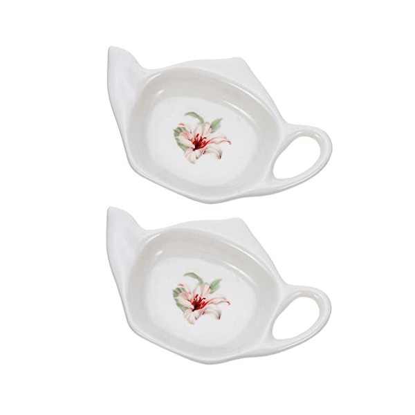 Angoily 2pcs Ceramic Tea Bag Holder Teapot- Shaped Tea Bag Coasters Spoon Rests Classic Tea Time Caddy Storage Rack Tray Bracket Saucer Seasoning Dish for Home Kitchen