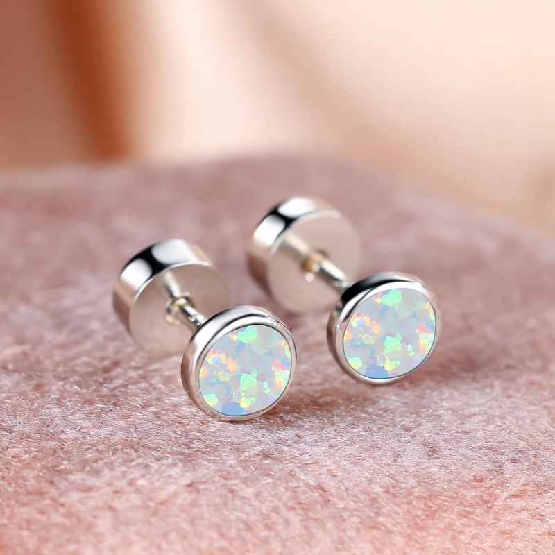 Angol 3Pairs Hypoallergenic Screw Back Stud Earrings for Women 925 Sterling Silver Earrings Opal Turquoise Moonstone Stud Set for Sensitive Ears Gifts for Her (Round Screw Back)