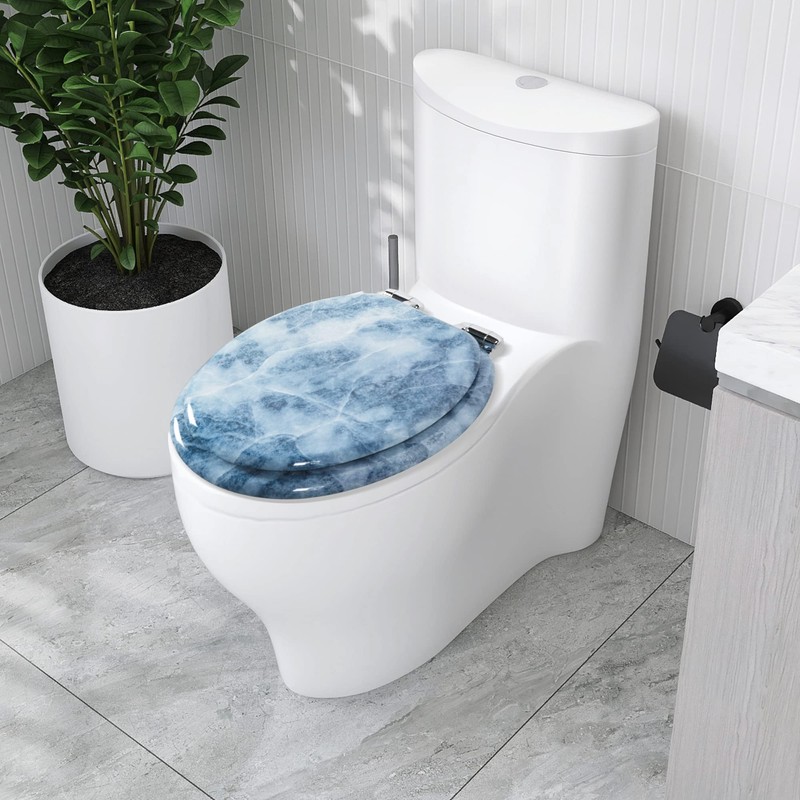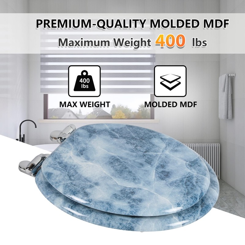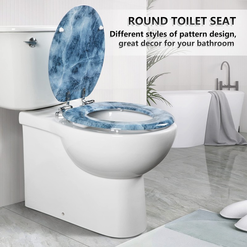 Angol Shiold Angol Shiold Round Toilet Seat Molded Wood Toilet Seat with Quietly Close and Quick Release Hinges, Easy to Install also Easy to Clean (Round, Blue Marble)