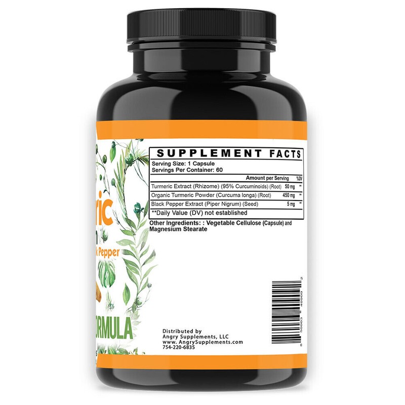 Angry Supplements Turmeric Curcumin 95% Vegan with Black Pepper, Joint Support Angry Supplements
