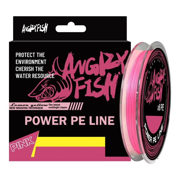 ANGRYFISH Pink PE Braided Fishing Line - High-Visibility to Anglers, Invisible to Fish - Ultra-Strong & Abrasion Resistant - Thinner Diameter for Longer Casts - Saltwater Freshwater Use(25LB/150Yds)