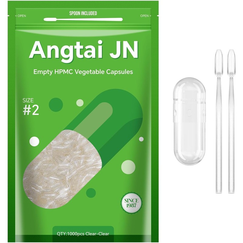 Angtai JN Empty Capsules, AngtaiJN 1000 Count Clear Vegetarian Capsules, Size 2 DIY Pill Capsules Filling Empty Caps with Micro Lab Spoon, Kosher, ISO9001, Gluten Free, Halal Certified, Non-GMO Certified