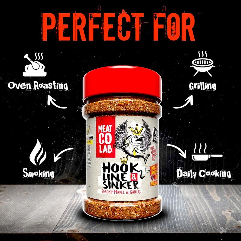 - MAPLE GLAZED GOODNESS - Our Hook Line & Sinker Rub delivers a deliciously unique blend of maple glaze and smoky garlic that transforms your dishes into a formidable flavour experience, perfect for seafood, chicken, and pork that’ll have everyone coming back for more.