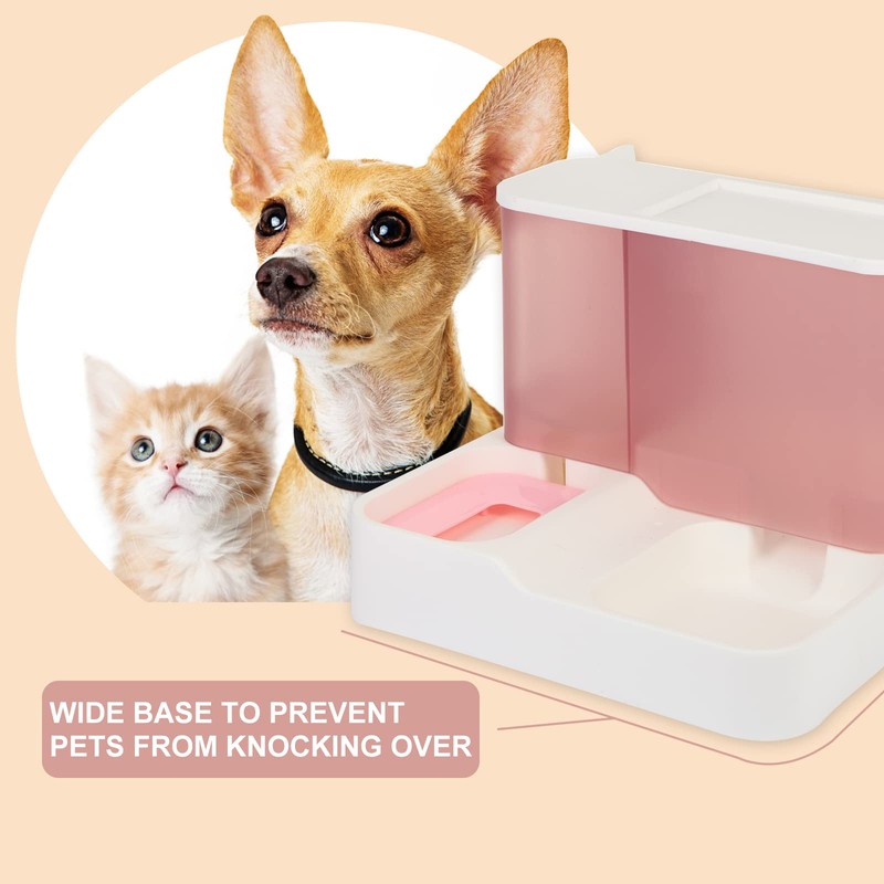 - 【2-in-1 Design】 Our automatic cat feeder with a 2-in-1 design,includes a 1-liter water dispenser and a 2.8-liter food dispenser,translucent bucket that makes it easy to confirm the amount of water and food, easy to place, and does not take up much space. Not only beautiful in appearance, but also thick and durable, is a good helper for feeding cats, dogs, and other pets. Gift: A food shovel for you to add food to your pets.