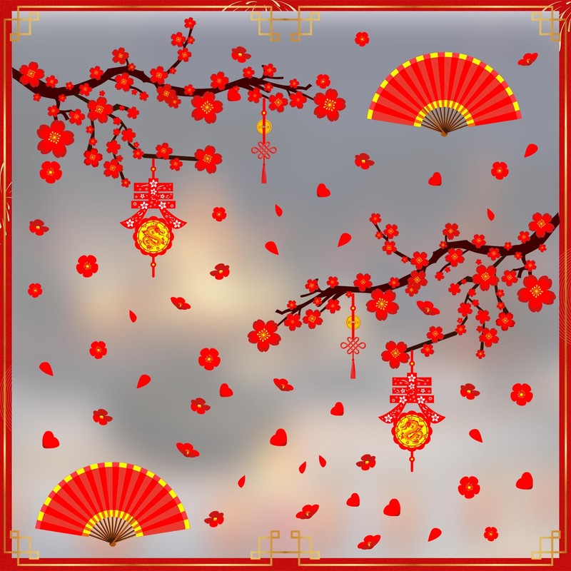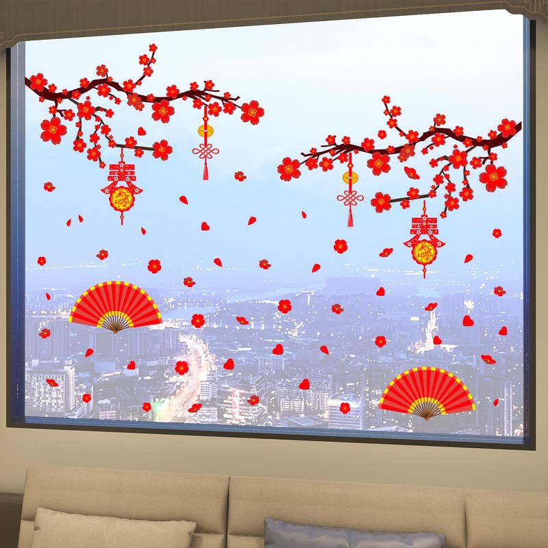 - New Year window stickers: This red New Year window stickers contain Chinese knot, auspicious clouds, flowers, zodiac and other patterns. Colorful and a wide variety of New Year stickers can bring a strong New Year atmosphere to the room