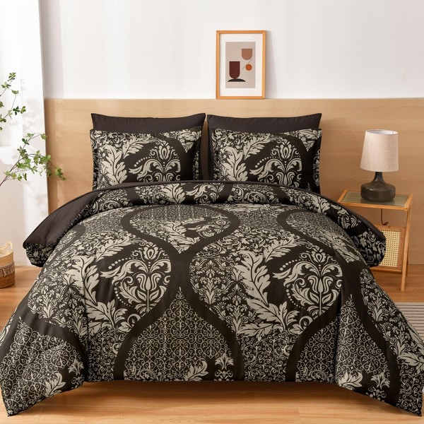- 【Boho Damask Pattern Design】: 7 pieces comforter set combines the popular fashion elements of damask pattern design, the whole exudes the romantic atmosphere of classicism, bringing you the ultimate luxury experience!The classic vintage brown color matches perfectly with any of your ideal styles.