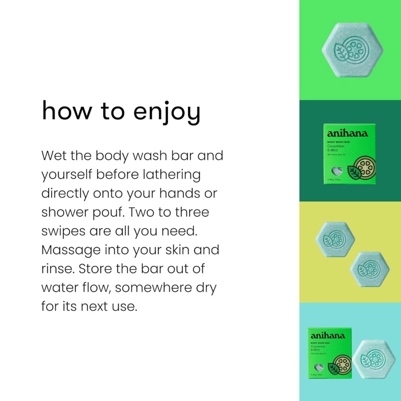 ANIHANA Vegan Gentle Body Cleanser Bar With Cucumber Mint 2.8 Oz Eco Friendly Spa Gift
