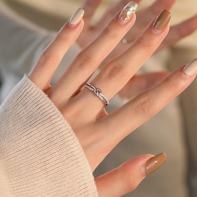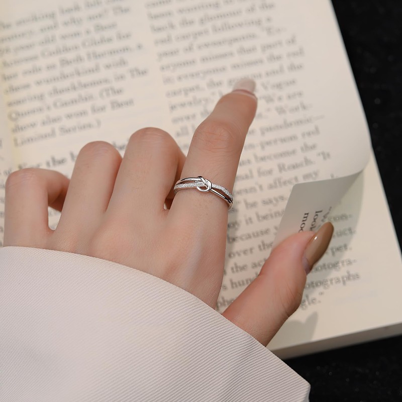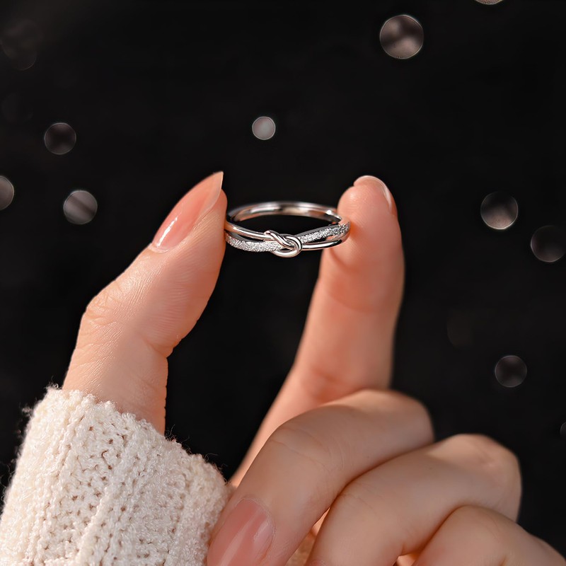Anillo de Mujer Qwonekou Anillo de plata Anillo Ajustable Diseño de Nudo de Amor,Anillos para Mujer Anillo de Boda, Regalo Ideal de Compromiso, Cumpleaños o Aniversarior 40001