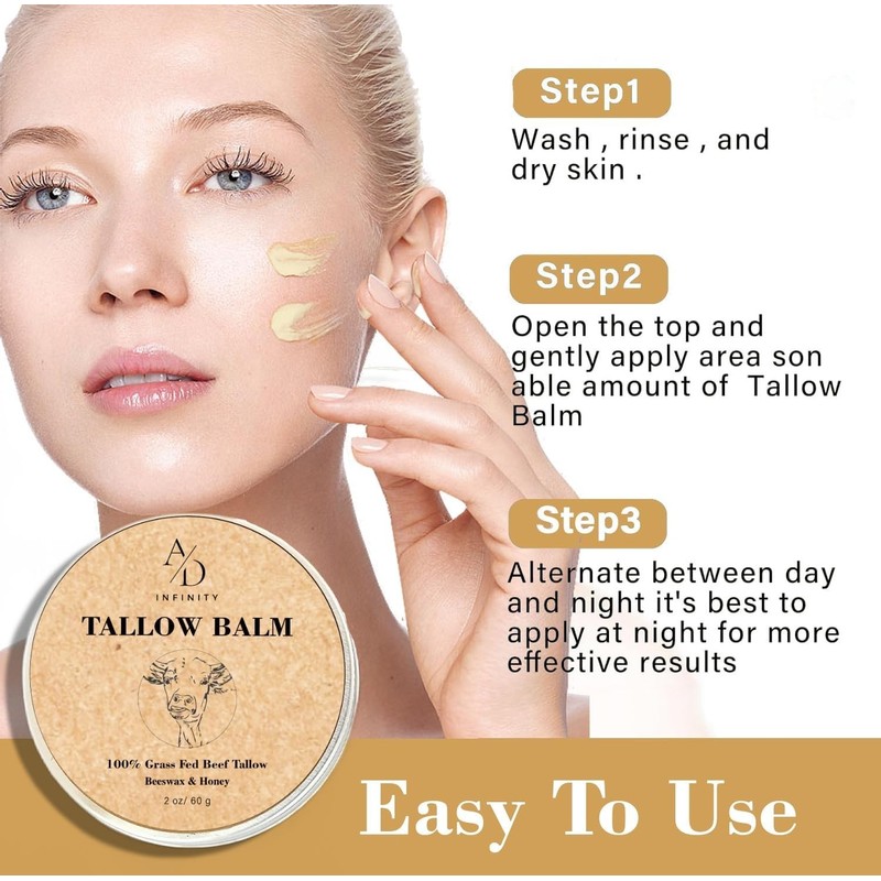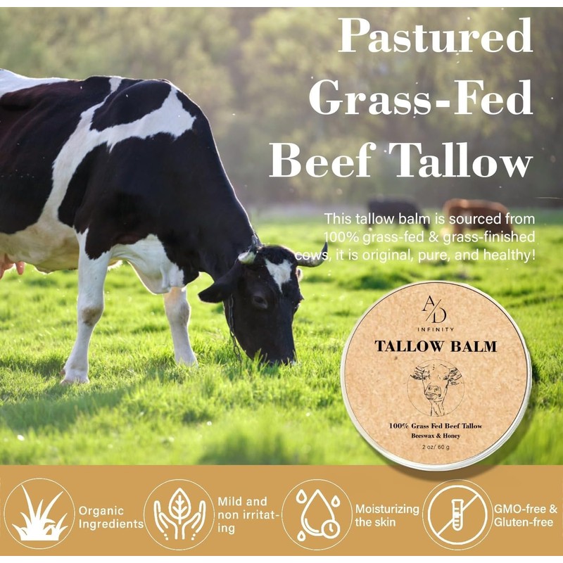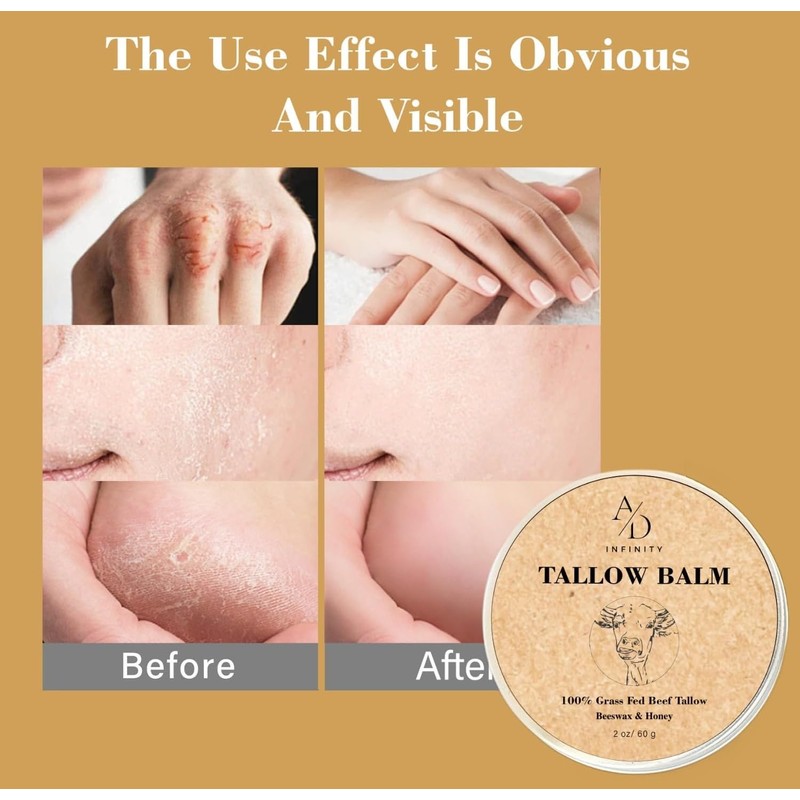 - 100% Natural Ingredients: Made with grass-fed beef tallow and raw honey, enriched with essential vitamins (A, D, E, K, B12) for ultimate skin nourishment.