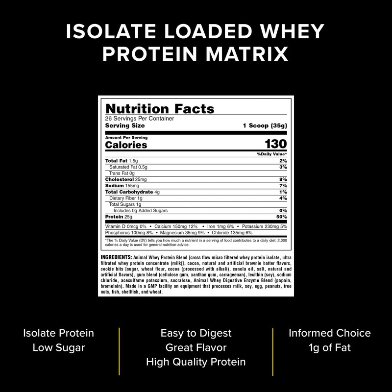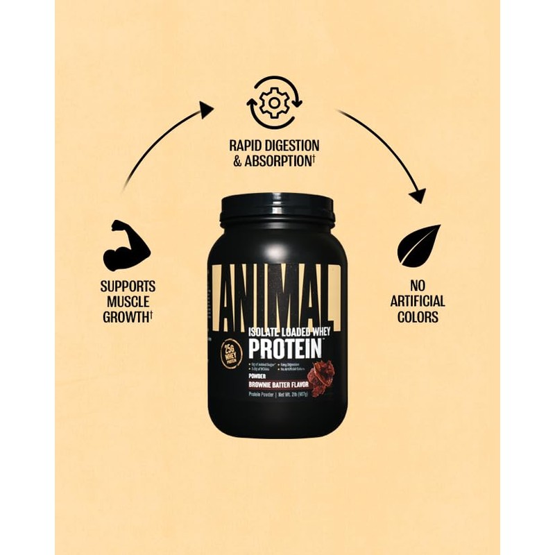 Animal Animal Whey Isolate Protein Powder - Loaded for Pre & Post Workout Muscle Builder and Recovery with Digestive Enzymes for Men & Women - 25g Protein, Great Taste, Low Sugar - Brownie Batter 2 lbs
