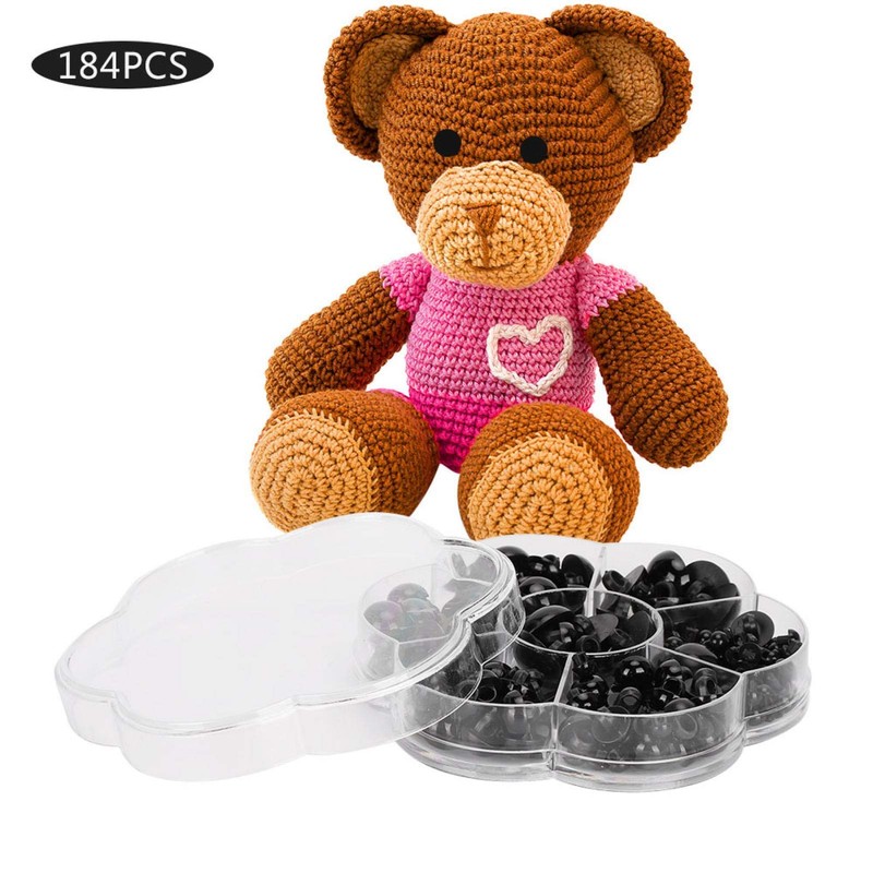 Animal Buttons, Decorative Black 184pcs Artificial Mushroom Domed DIY Plastic Eyes, Sewing Buttons for Art Craft Art Toys Craft Supplies