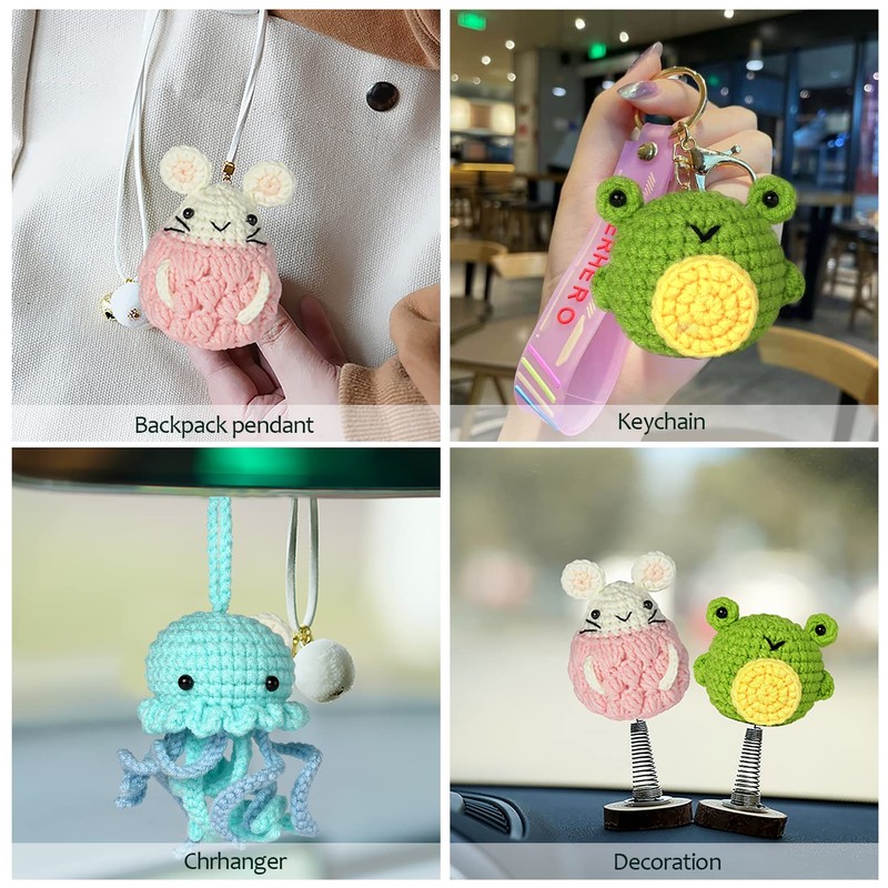 - 3 Animals Design The crochet set has 3 different animal shapes, namely a pink white hamster, a green frog and a blue jellyfish. These animal shapes are simple and easy to crochet and the finished product is vivid and beautiful.