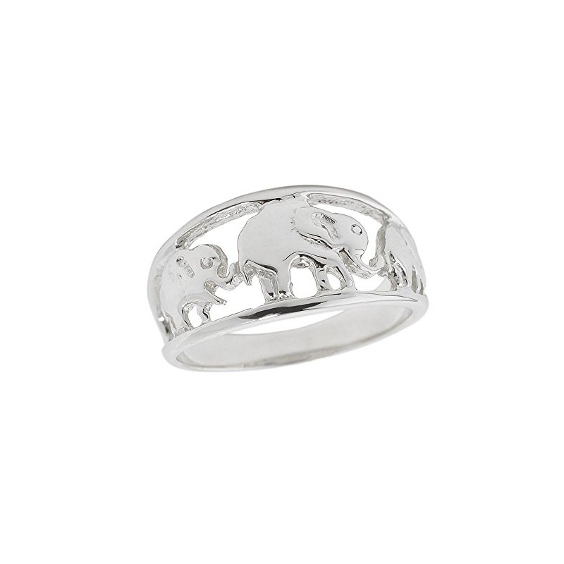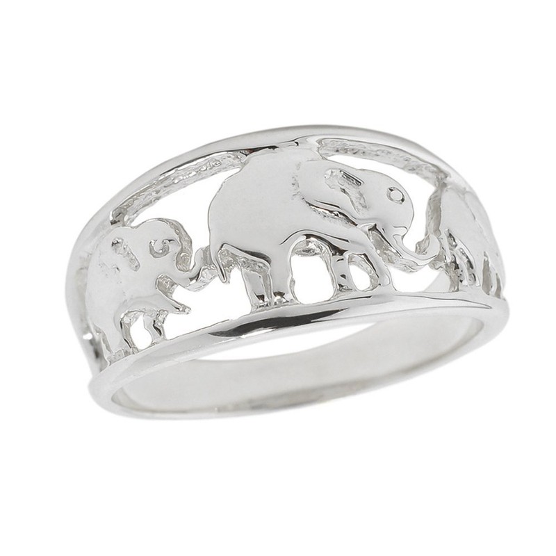 Animal Kingdom Solid 925 Sterling Silver Open Design Band Three Elephant Ring (Size 5.5)