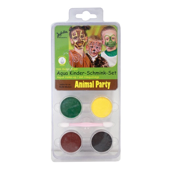 Become a real animal with the make-up set, consisting of an applicator and make-up in the colours brown, black, green and yellow. Who didn't always want to feel like an animal. With the animal make-up set, dreams come true. The make-up in the set is enough for about 15 - 20 masks and is easy to remove with water and make-up. Whether it's a children's party or carnival - a great make-up face is of course part of it. Fashionshop24 recommends animals, such as giraffes, tigers or frogs, but countless other animals can also be created with the set.