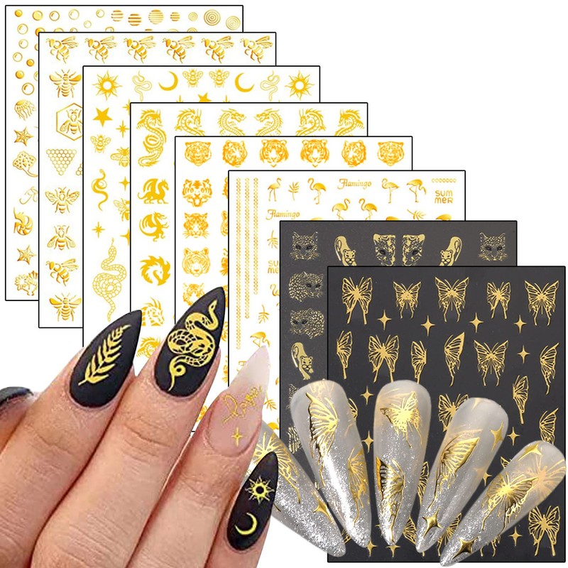 - 【Quantity】You will get 8 sheets shiny gold animal nail art adhesive stickers, each paper measure 4.1 x 3.1 inches(10.3 x 8 cm). A variety of animal patterns, these nail stickers are perfect for matching other nail art.