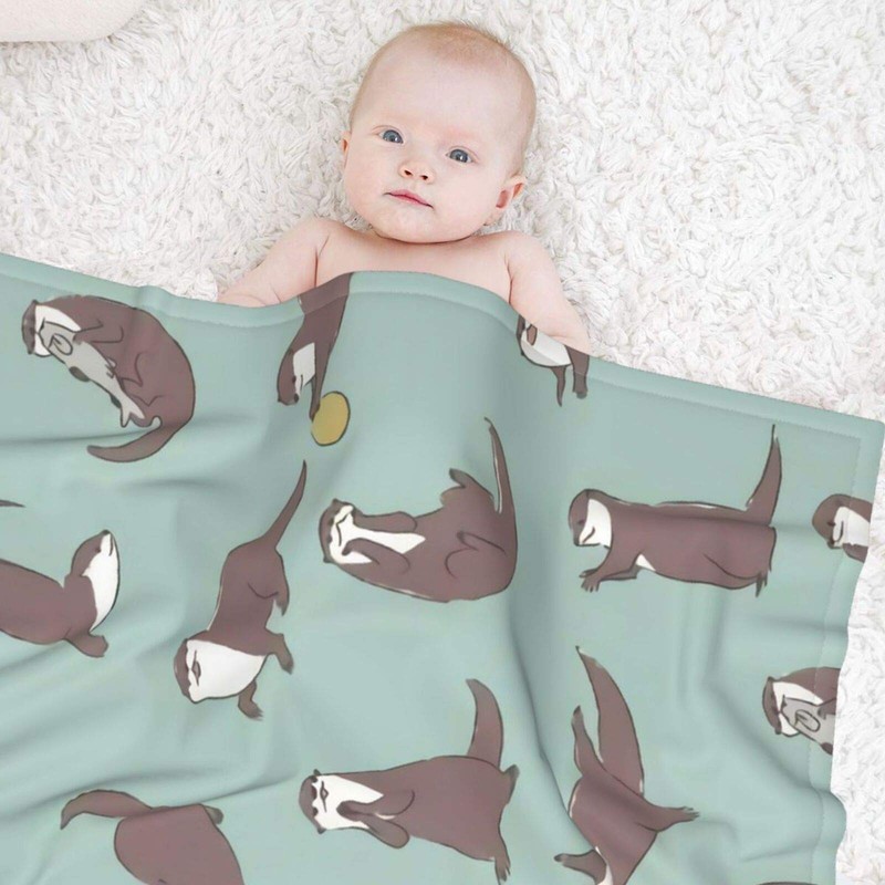 Animal Pattern Otter Blanket, Children's Blanket, Baby, Microfiber, Warm, Ultra Soft, Skin-friendly, Can be worn on your knee, Fluffy, Washable, Stylish, Cute, Nursery School, Home Use (39.8 x 29.9 inches (101 x 76 cm)