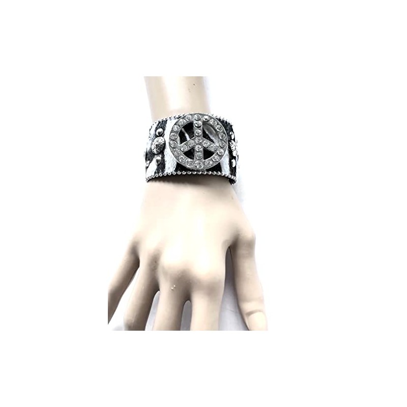 Animal Print Faux Leather Bracelet with PEACE Symbol (Black Color Bracelet)