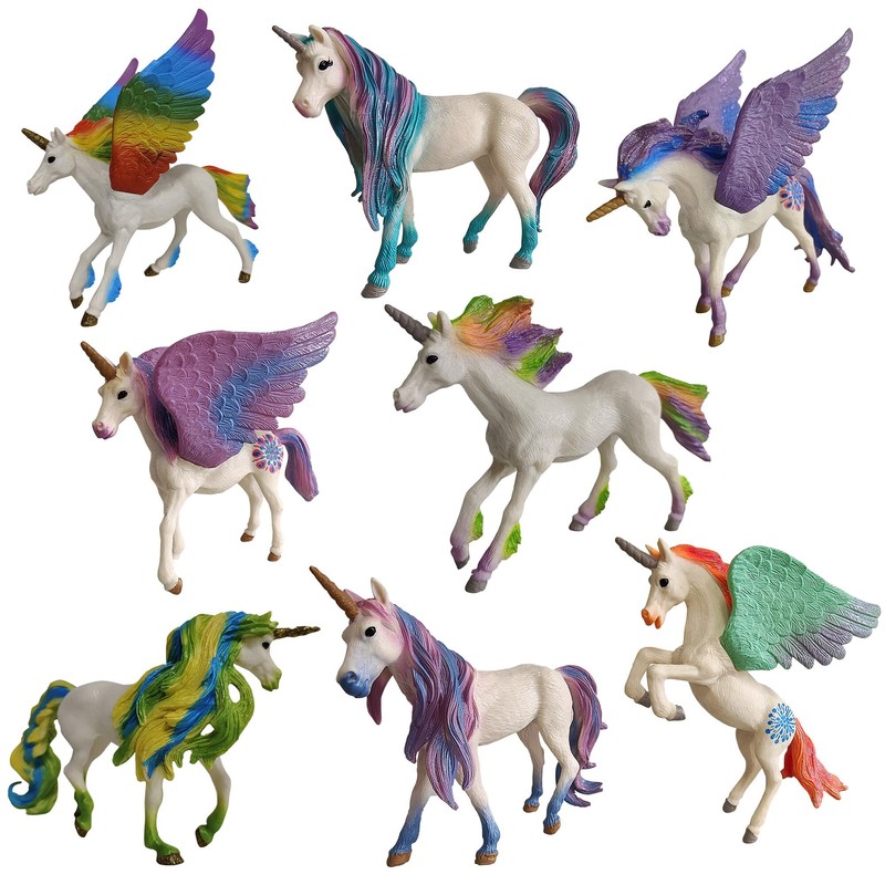 - MAGICAL CREATURE COLLECTION: Includes four Pegasuses (4.5”H to 6.75”H) and four unicorns (2”H to 4.5”H), each beautifully designed in dynamic poses that inspire storytelling and adventure in every setting.