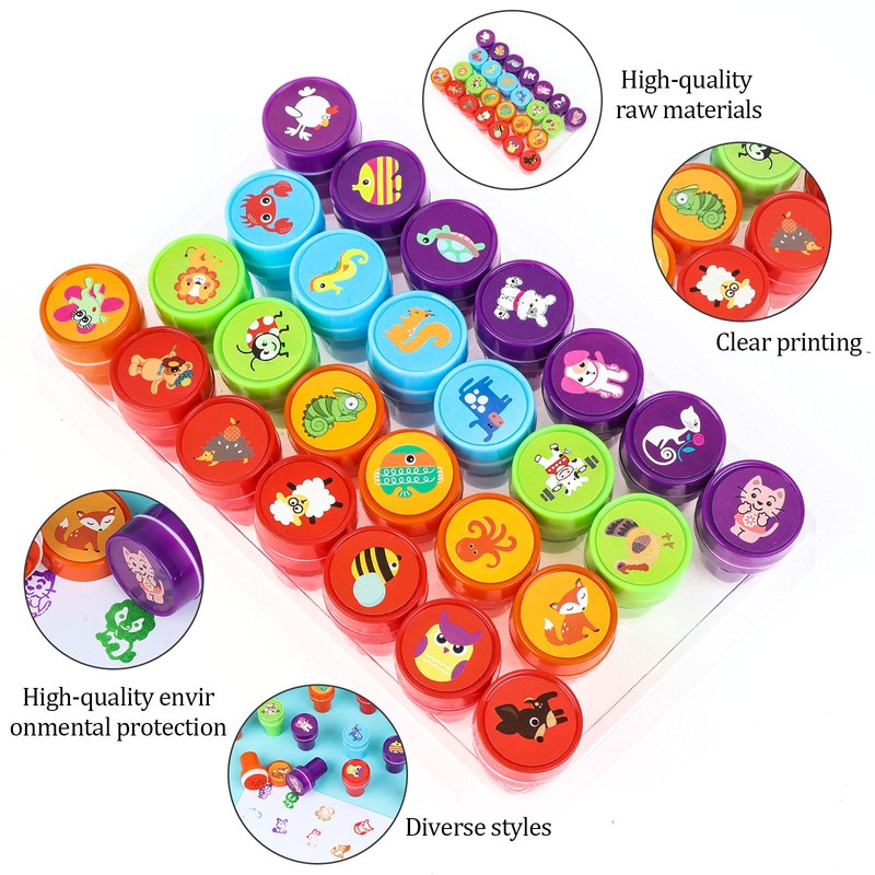- Cartoon Self Ink Stamp : You will receive 26 pieces cute animal self-inking stamps. Each stamp has a diameter of 2.6 cm and a height of 3.7 cm. Perfect for holiday gifts, classroom rewards, gift bag favors, and a surprise for children.