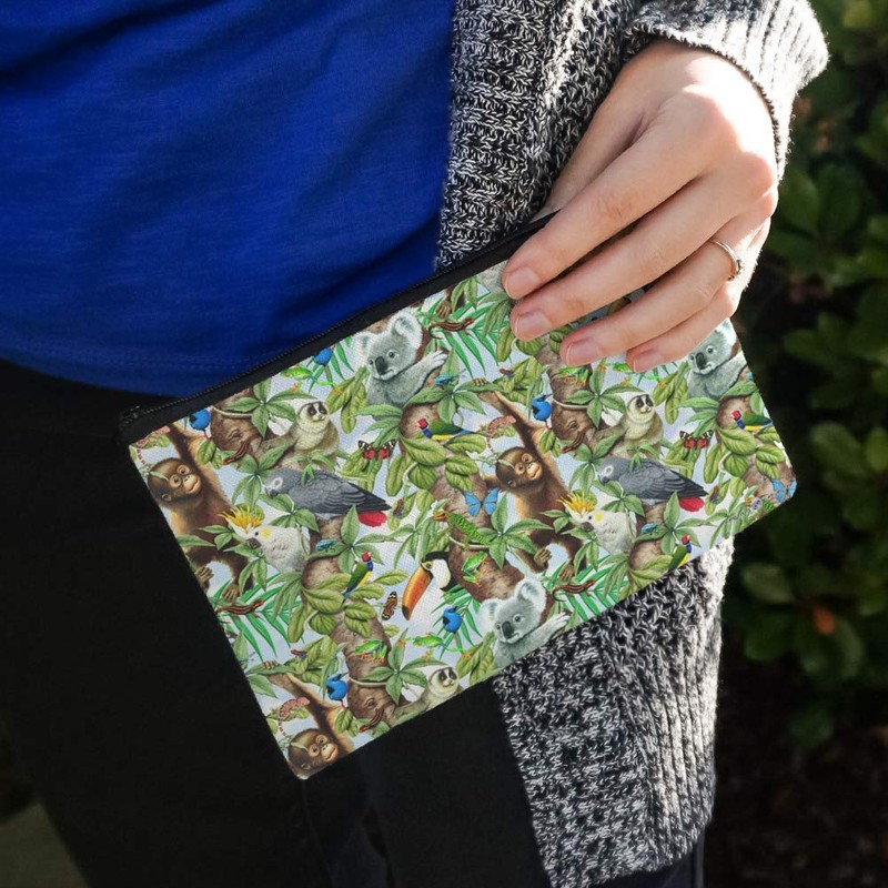 Animal Tree of Life Monkey Koala Toucan Pattern Makeup Cosmetic Bag Organizer Pouch