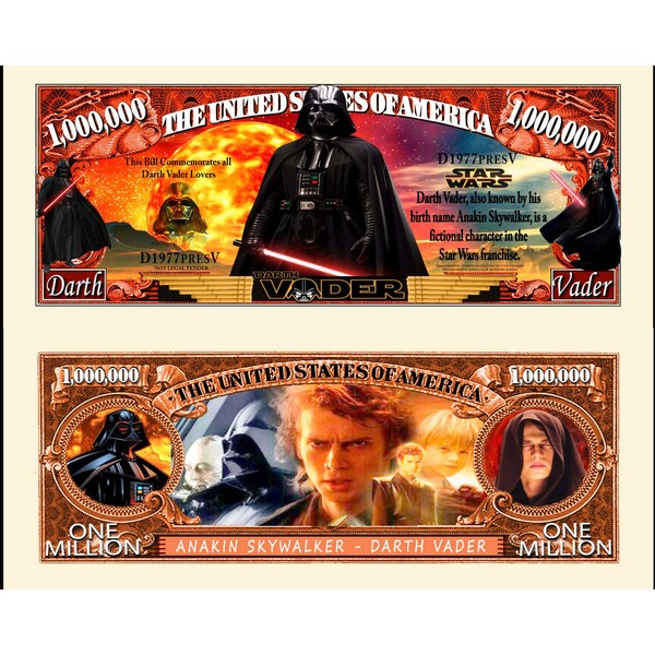 Anime Source Darth Vader Anakin Skywalker Sith Force Commemorative Novelty Million Bill with Semi-Rigid Bill Protector