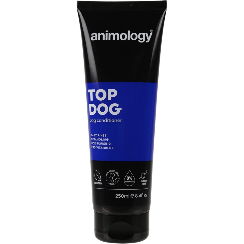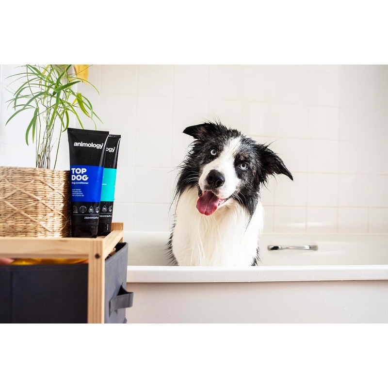 Top Dog is a vitamin enriched dog conditioner which helps to detangle and replenish moisture in your dog's coat. Enriched with pro-vitamin B5, Top Dog also helps to maintain a soft, shiny and healthy coat. All Animology dog shampoos have a mild yet deep cleaning action that removes dirt and odour without stripping the coat of its essential oils. Our 'easy rinse' formulation keeps washing time to a minimum, while the built-in conditioner and Pro-Vitamin B5 help to improve the health, strength and condition of your dog's coat.