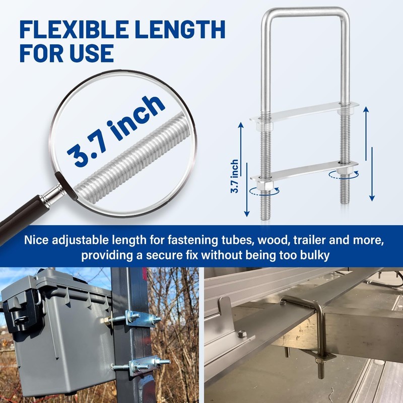 - Wide Application: U-bolts can be used in domestic and industrial applications,including manufacturing, maintenance, automotive sector, clothing production, etc., also nice for fastening tubes, wood, trailer and more, providing a secure fix without being too bulky