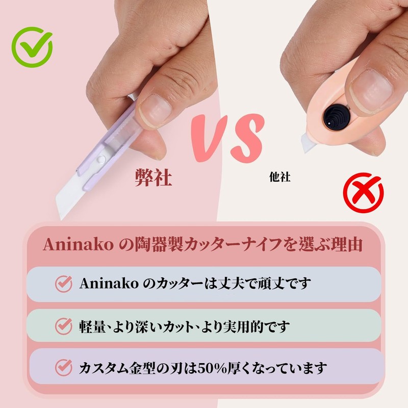 SAFE AND PRACTICAL: Aninako's cardboard uses high quality ceramic blades, so you don't have to worry about scratching your hands, it's a safe and practical safety knife for opening cardboard, home lunch bags, etc. The sharp blade is sharp and should be cautious when opening large items such as cardboard or envelopes.