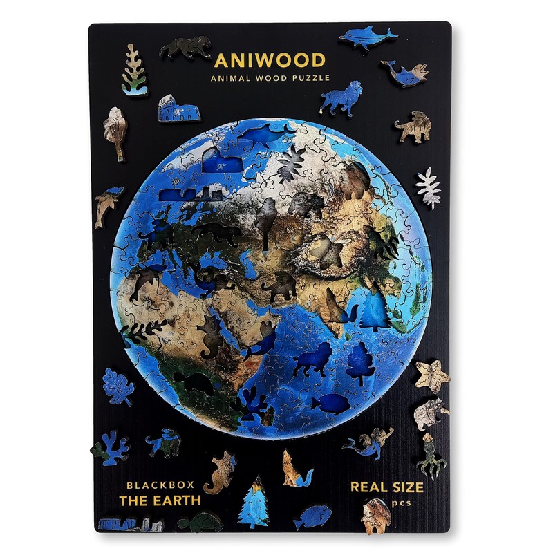 ANIWOOD Wooden Puzzle Adult Animals Die-Cut Lid Life Size Puzzle Box 3 Difficulty Modes Decorative Element Unique Puzzle Pieces (The Earth, M)