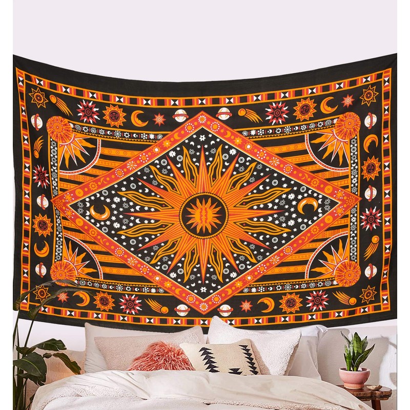 ANJANIYA Burning Sun Tie Dye Tapestry, Celestial Sun Moon Star Planet Bohemian Twin Tapestry Tarot Card Wall Hanging Boho Tapestry Hippie Hippy Tapestry Beach Coverlet Curtain (Orange, 55"X85")