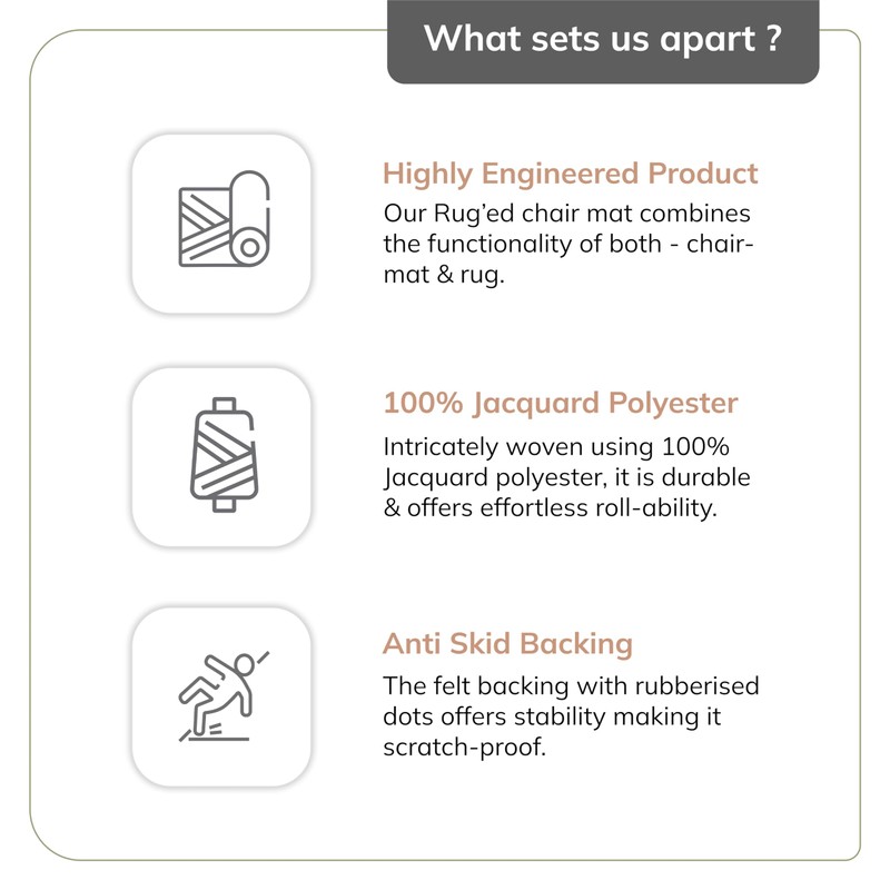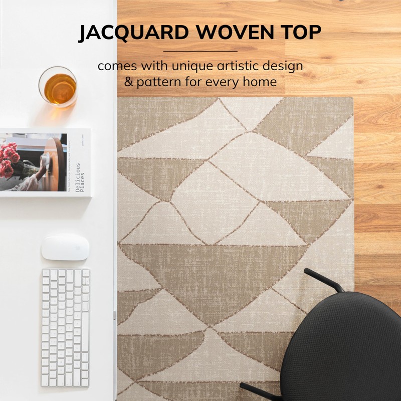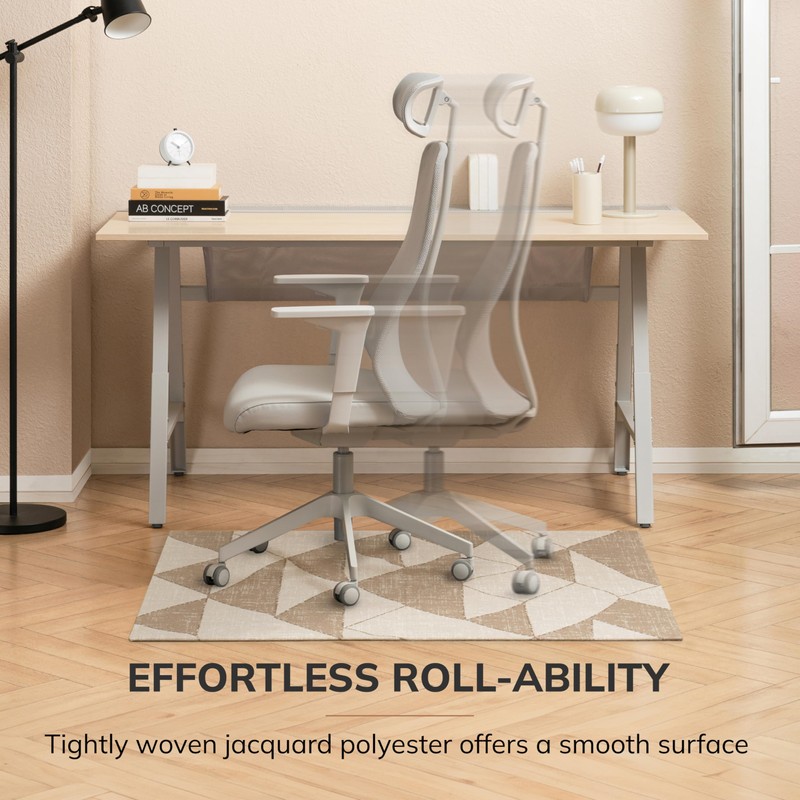 - Jacquard Woven Top: Experience an elegant touch with our office chair mat featuring a Jacquard woven top. This chair mat for carpet and hardwood floors combines sophisticated design with durability, making it an ideal desk chair mat for carpet and hard surfaces.