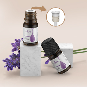 Exclusive Oil Bottles for LunaComes with 2 bottles of Anjou essential oil with Anjou patented-pending stoppers, ensure no oil leakage when held upside down. | Smart App ControlAdjust all functions via the Anjou Diffuser app – choose your color setting by tapping the option on the app instead of switching colors one by one from the diffuser. | Whisper QuietQuietly disperses mist below 30dB so as not to disturb your sleep when put on the nightstand. |