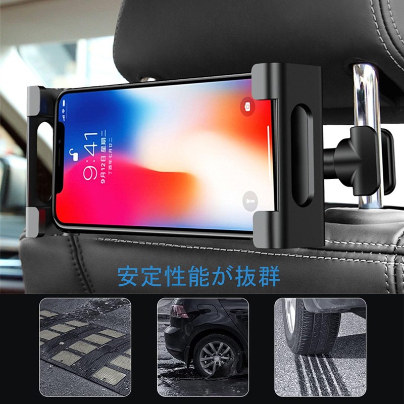 - (Compatible with Tablets & Smartphones) Tablet Car Holder, Rear Seat Headrest + Holder, Developed with the latest design of the biaxis telescopic arms. It can be adjusted from 3.9 to 10.6 inches (27 cm), left to right and left to right 0.2 to 14.2 inches (0 to 36 cm), allowing you to freely adjust the perfect distance from your eyes. The advanced clamp design can be used not only with smartphones but also tablets. Fits all 4.7-12.9 inch devices. Compatible with smartphones, tablets, and Nintendo models